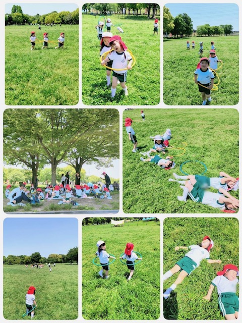 ♡年少組 園外保育♡ NO.2 2023/05/16 遊んだ後はお弁当をみんなで美味しくいただきました♡♡お腹がいっぱいになった後はフラフープで電車ごっこやケンケンパなどをして遊びました!みんなの可愛い笑い声が響いていましたね(#^.^#)天気に恵まれた中、みんなで過ごす楽しい経験が増え、先生達も楽しい思い出が出来ました!!これからも沢山の事を経験しましょうね♪ 園だより一覧へ