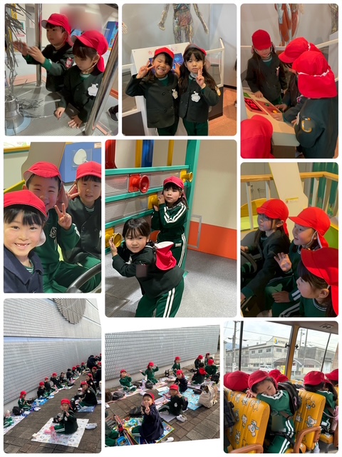 ★年長組 園外保育ドリーム21★ 2026/01/15 今日は、ドリーム21へ園外保育に行って来ました。全員参加することが出来ました。プラネタリウムでは、綺麗な星がたくさん輝いていて、子どもたちの驚いている声がいっぱい聞こえて来ましたよ(*'ω'*)探検ひろばでは、いろんな遊ぶ場所があり、夢中で遊びましたね♬その後は、美味しいお弁当を嬉しそうに食べましたね。(#^.^#)幼稚園最後の園外保育、楽しかったね♡ 思い出いっぱい作れたね☆彡 園だより一覧へ
