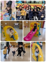「これ何かなぁ?」と玩具にも興味津々、遊具でも元気いっぱいに遊びました。
