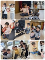また、いろいろな楽器に触れて音色を楽しみ、お馴染みの曲に合わせて元気な音を響かせていました。