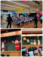 ♬観劇会♬ 2025/11/27 今年も劇団カッパ座さんが幼稚園に来てくれました(#^^#)サンタクロースの登場に子ども達は大喜びでした‼楽しい歌を歌ったり、大きな風船で遊んだりしましたね♡長靴をはいた猫を鑑賞しました。カッパ座さん、今年も楽しい時間をありがとうございました♬ 園だより一覧へ