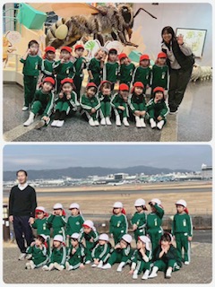 ♪年中組 園外保育♪ 2026/01/19 今日は子ども達が楽しみにしていた園外保育がありました!昆虫館で、初めて見る昆虫や生き物に興味津々で観察しました(*^_^*)蝶の温室では、たくさんの種類の蝶が飛んでいて驚いていました!!スカイパークで間近に飛行機を見て、子ども達は大興奮でした✈年中組で行った最後の遠足は全員参加することが出来嬉しく思い楽しい思い出が沢山出来ましたね♡保護者の皆様、遠足のご準備ありがとうございました! 園だより一覧へ