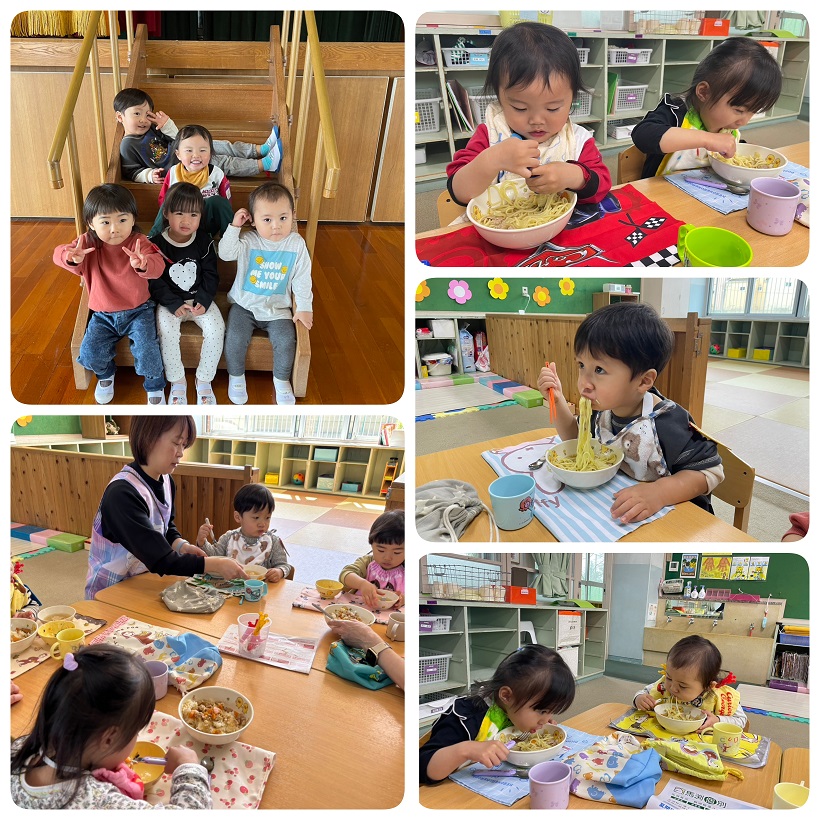 ▼杏組▼ 2026/04/13 この春、杏組に新しいお友達が入園してきました!初めてのことにも挑戦しながら、毎日いろいろな表情を見せてくれています。 戸外遊びで元気いっぱい遊んだあとはお楽しみの給食…みんなで食べるとおいしいね! 園だより一覧へ